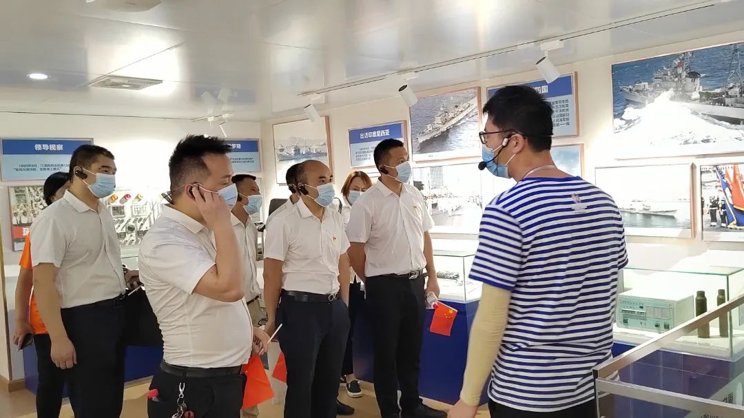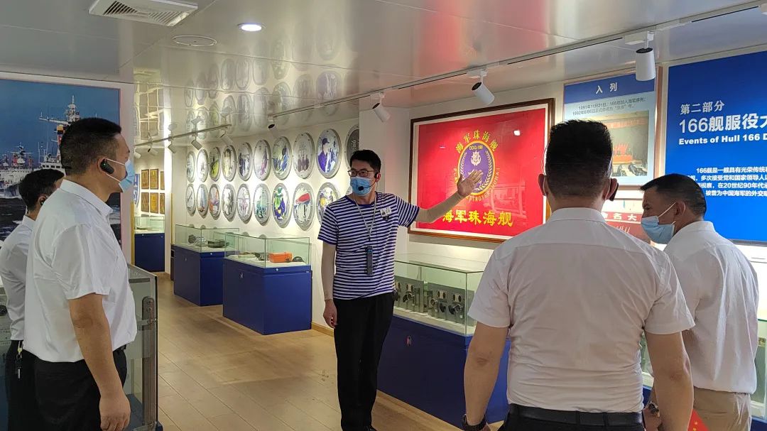 最后,全體黨員登上了原中國人民解放軍海軍“166”艦參觀,共同追溯中國海軍成長壯大的歷史。在 “166”艦上,通過大量的文字、圖片及多媒體等多種形式,回顧“166”艦自建造之初直至光榮退役的歷史。登上艦艇,首先映入眼簾的是甲板中部的艦對艦鷹擊導(dǎo)彈,反潛魚雷發(fā)射裝置,還有加裝的電子顯示屏上播放的166艦的歷史資料和發(fā)射影像資料等。并輔以大量水兵的生活用品、艦上專用器材等實物,讓我們重溫“166”艦的光輝歲月,感受艦上官兵的精神風(fēng)貌。了解166艦退役前為祖國做出的貢獻(xiàn),深切感受到中國軍人對黨、對祖國、對人民的無限忠誠。大家都為之深受震撼,不禁想起昔日它馳騁在大海上威嚴(yán)、雄偉的雄姿。