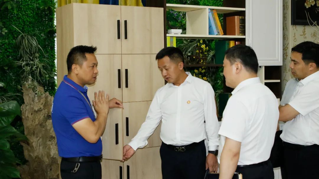 在集團公司黨支部書記、董事長、總經(jīng)理劉斌的陪同下,沈總一行先后參觀了集團公司鋁裝飾展廳、鋁家居展廳、黨群活動室、文化長廊等區(qū)域。