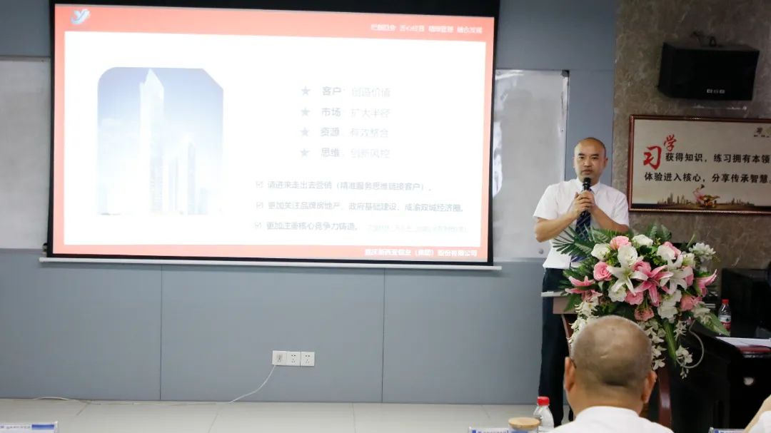 針對(duì)集團(tuán)公司下半年的市場(chǎng)開發(fā)工作:劉總從“為客戶創(chuàng)價(jià)值、擴(kuò)大市場(chǎng)半徑、有效整合資源、創(chuàng)新風(fēng)控思維、請(qǐng)進(jìn)來走出去融合營(yíng)銷(精準(zhǔn)服務(wù)思維去鏈接客戶)、成渝雙城經(jīng)濟(jì)圈、更加注重核心競(jìng)爭(zhēng)力鑄造”等方面進(jìn)行了深度闡述,為市場(chǎng)人員如何在激烈的市場(chǎng)競(jìng)爭(zhēng)中搶抓訂單指明了方向;關(guān)于品牌(文化)經(jīng)營(yíng),劉總指出:“一年企業(yè)靠運(yùn)氣,十年企業(yè)靠經(jīng)營(yíng),百年企業(yè)靠文化”!要求全體新西亞家人認(rèn)真踐行集團(tuán)公司經(jīng)過12年精心培育、打造、根植于新西亞熱土的企業(yè)文化,使新西亞企業(yè)文化真正成為支撐企業(yè)高質(zhì)量發(fā)展,鍛造員工隊(duì)伍、激勵(lì)員工成長(zhǎng)的重要法寶。
