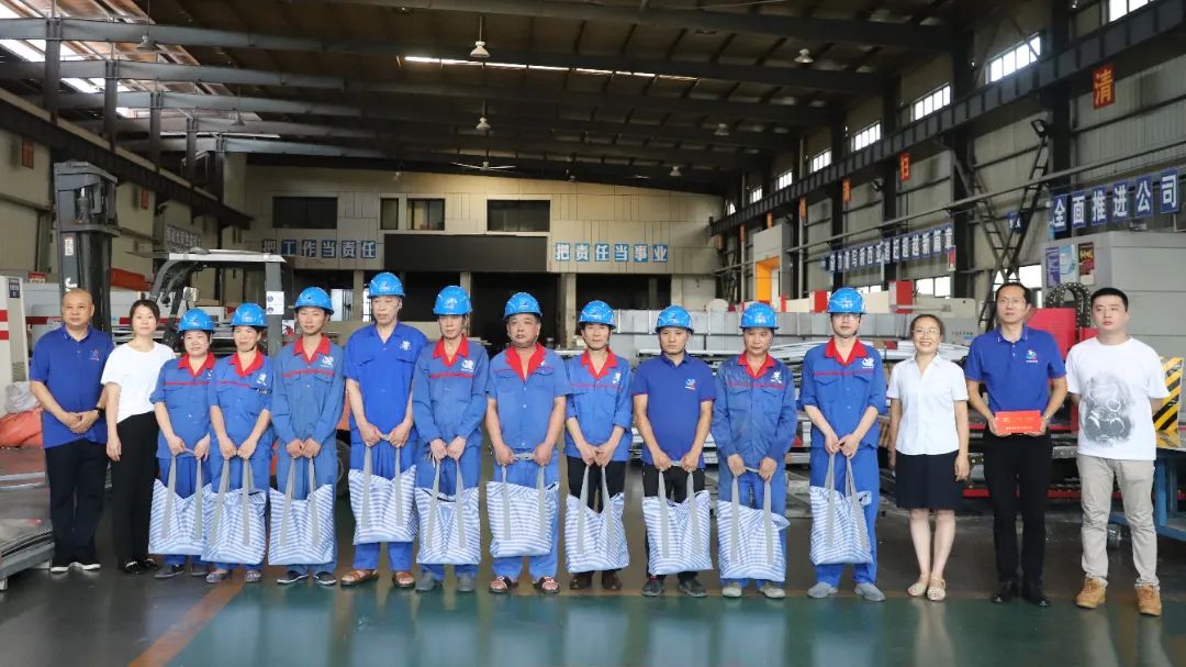 炎炎夏日送清涼,絲絲關(guān)懷潤(rùn)人心。8月10日下午,江津區(qū)總工會(huì)黨組成員、副主席鄒田梅帶領(lǐng)區(qū)職工服務(wù)中心、德感工業(yè)園發(fā)展中心相關(guān)負(fù)責(zé)人到我司開(kāi)展“炎夏送清涼”慰問(wèn)活動(dòng),向在高溫下堅(jiān)守崗位的一線職工送去清涼大禮包和慰問(wèn)金。
