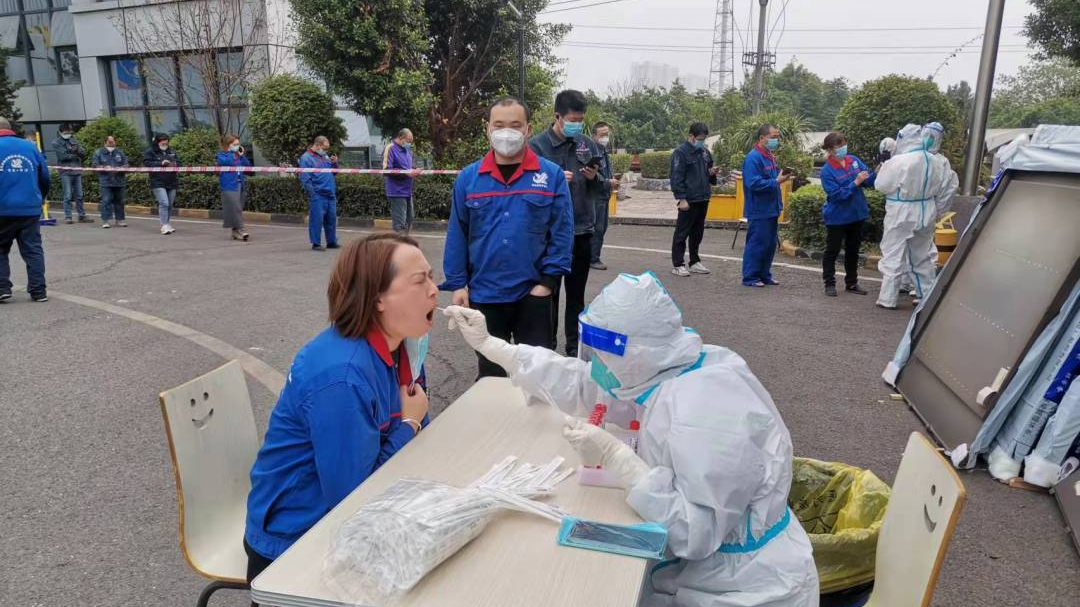 “不出公司大門就可以進(jìn)行核酸采樣,做完就可以直接回到工作崗位上,既節(jié)省了時(shí)間,又不耽誤工作,還不擔(dān)心交叉感染,真的特別方便。”生產(chǎn)系統(tǒng)員工紛紛稱贊。