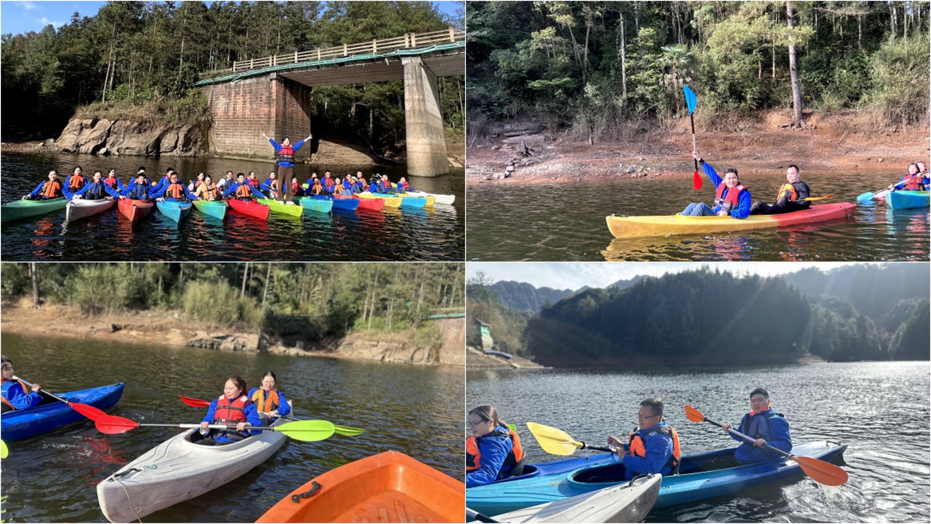 下水前,所有人拿著五彩槳板在碼頭集合,教練首先為大家進(jìn)行了安全知識培訓(xùn),講解了救生衣穿戴、槳的使用、水上注意事項(xiàng)等內(nèi)容。在教練的指導(dǎo)下,大家學(xué)習(xí)掌握了皮劃艇基本技能,現(xiàn)場人員兩兩分組,按秩序登艇,體驗(yàn)水上滑行的悠閑與快樂。在波光粼粼的湖面揮槳前行,大家從緊張到放松,從害怕到勇敢,玩得不亦樂乎,現(xiàn)場笑聲不斷。
