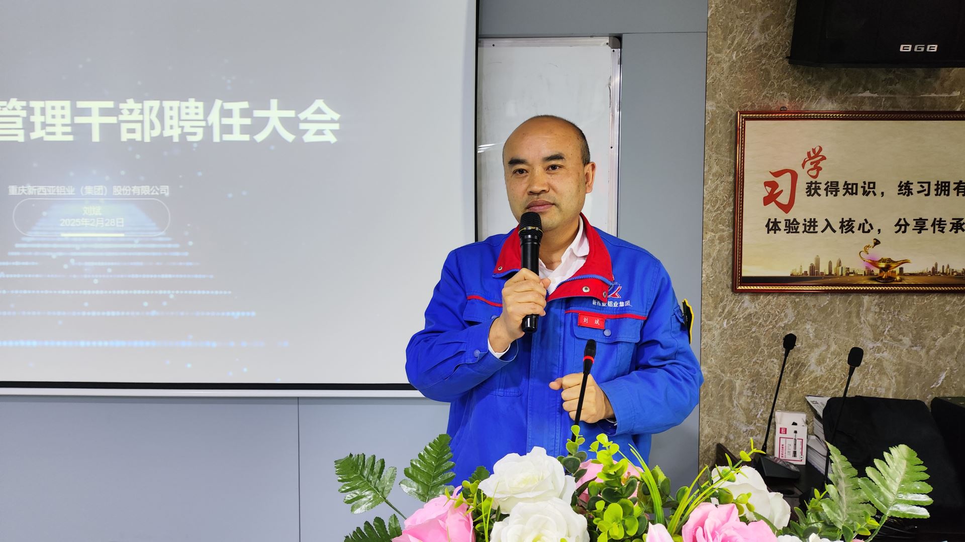 2月28日,重慶新西亞鋁業(yè)集團(tuán)2025年管理干部聘任大會(huì)在三樓商學(xué)院隆重舉行。大會(huì)由總經(jīng)理助理周雄主持,集團(tuán)公司董事會(huì)成員、擬聘任管理干部負(fù)責(zé)人、儲(chǔ)備(后備)人才以及員工代表等48人參加會(huì)議。
