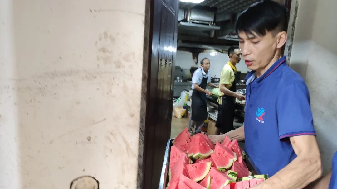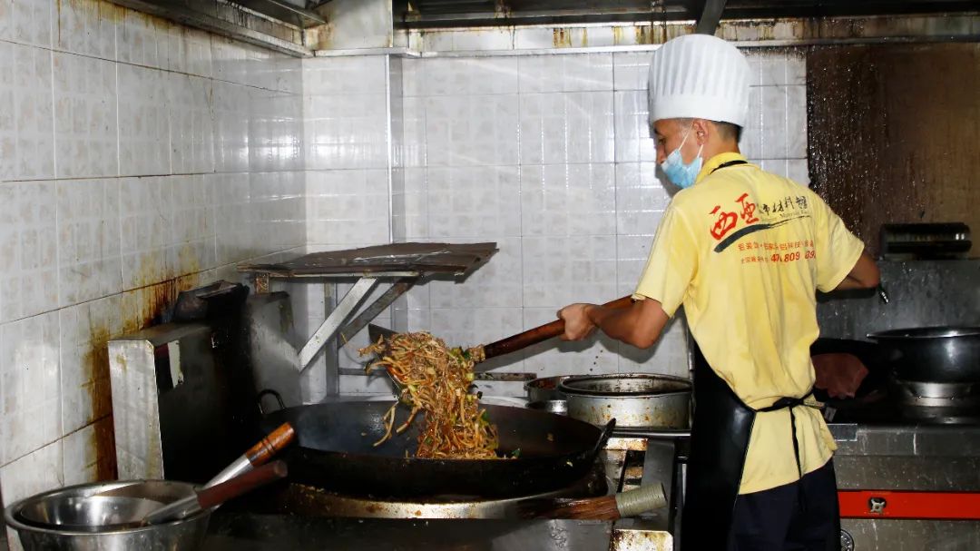 在廚房里靠近火焰的灶臺邊,溫度竟高達(dá)50℃!食堂工作人員穿著工作服,戴著口罩,在煙與火的戰(zhàn)場上,用自己的汗水,奏響后廚鍋碟盆勺的交響曲,在高溫爐煉獄中,每日堅(jiān)持給大家烹飪可口的飯菜。