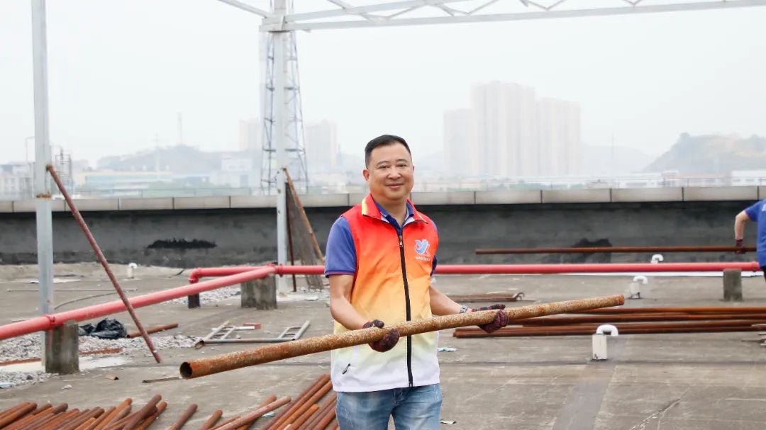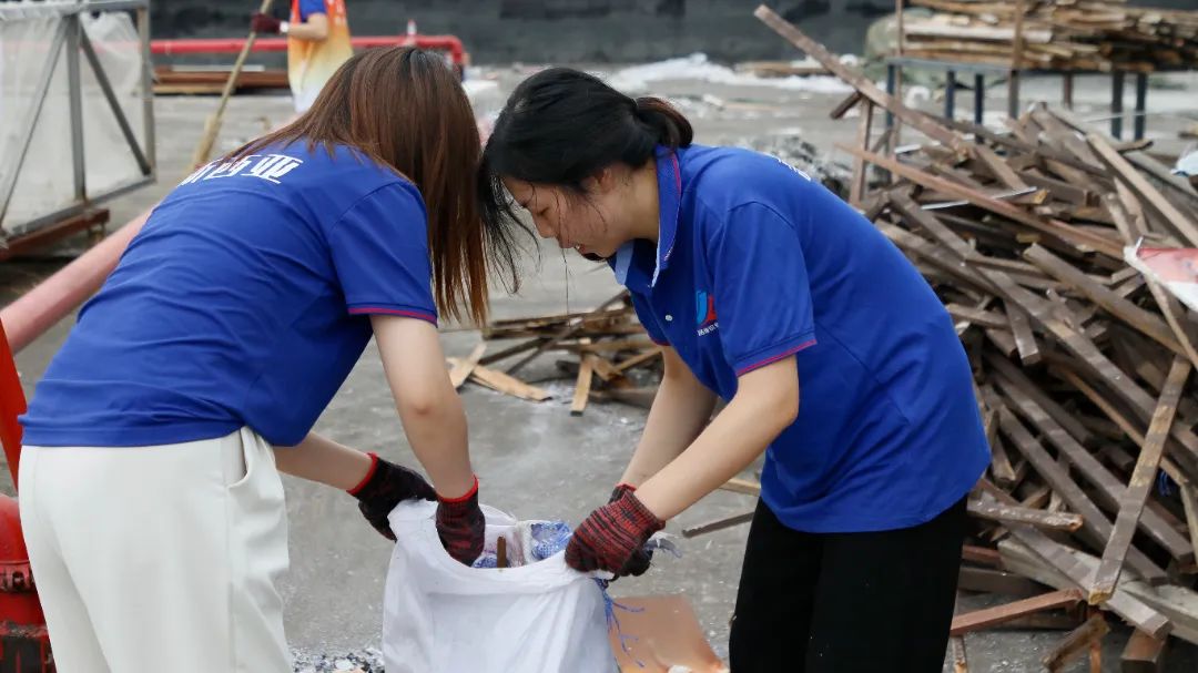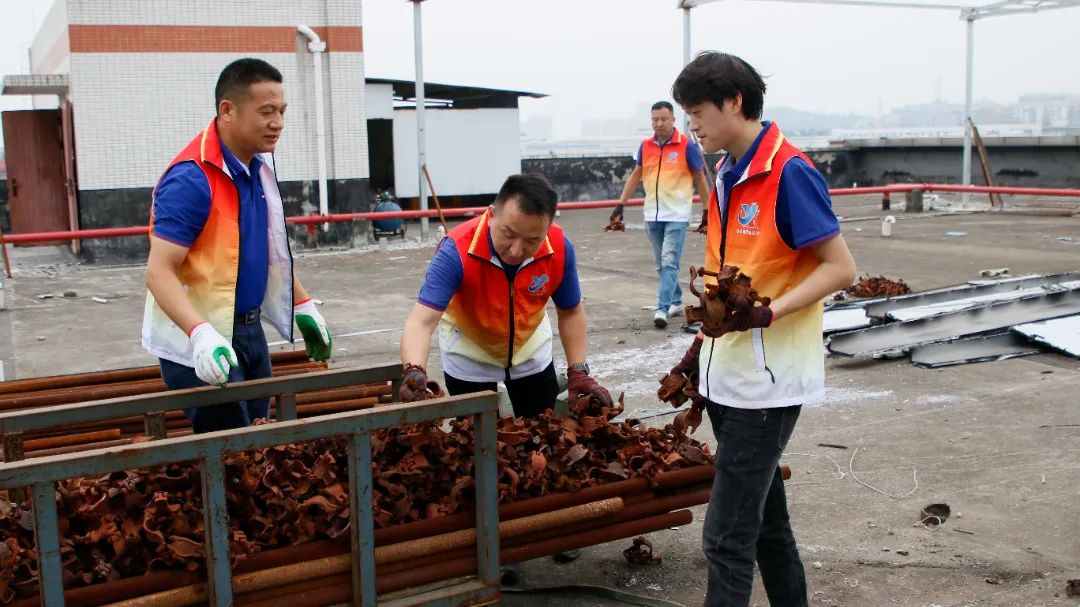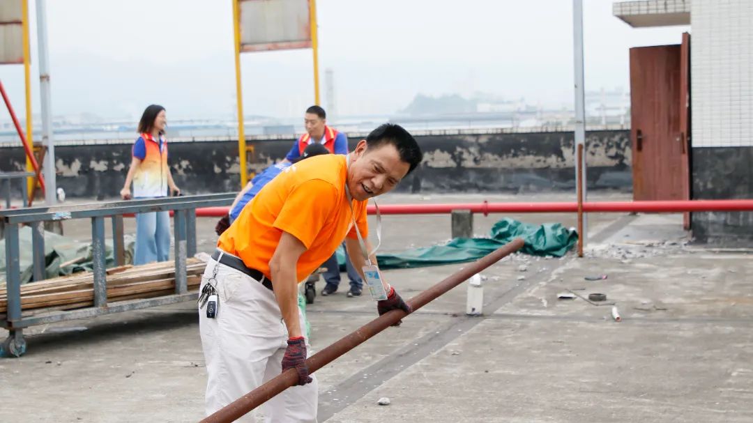 勞動中,大家忘記了自己的年齡、性別,個個不甘落后,搶著去干重活、臟活、累活……勞動的汗水浸濕了大家身上的衣裳,同時也換來了“收獲的喜悅”。經(jīng)過近兩個半小時的辛勤勞動,讓原來雜亂的廠房頂樓煥然一新。