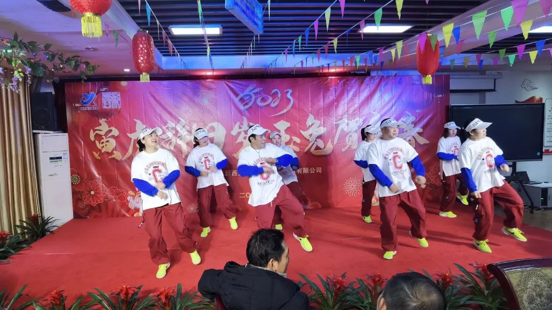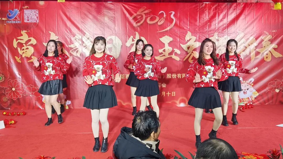 16點(diǎn)30分,來自后勤保障部門的姑娘們帶來的舞蹈《福氣要來到》熱舞開場(chǎng),拉開了新西亞2023新春團(tuán)拜晚會(huì)的帷幕。一首開場(chǎng)秀跳罷,臺(tái)下觀眾已然沸騰,恭賀新春的氣氛瞬間爆棚。