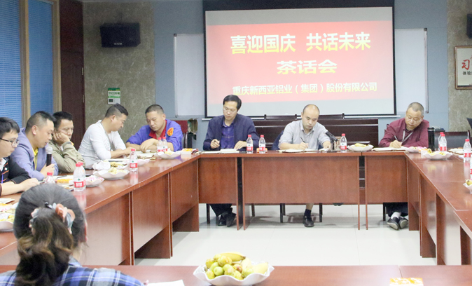 9月30日,重慶西亞鋁業(yè)集團公司在三樓會議室舉行了“喜迎國慶,共話未來”茶話會。公司董事長兼總經(jīng)理劉斌,副總經(jīng)理傅明華、周雄及各部門負責人、部分主管28人,齊聚一堂,共話新西亞美好未來。
