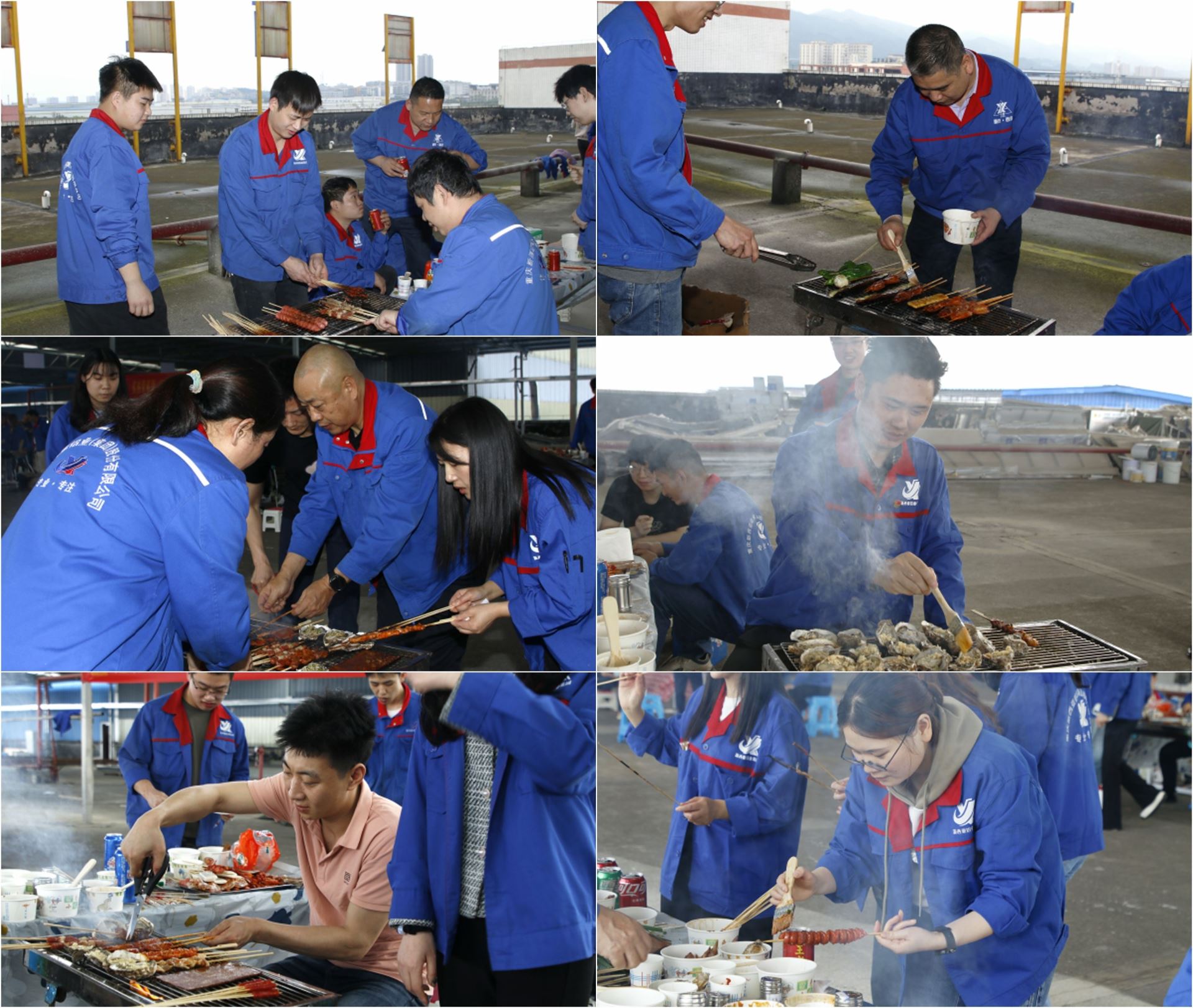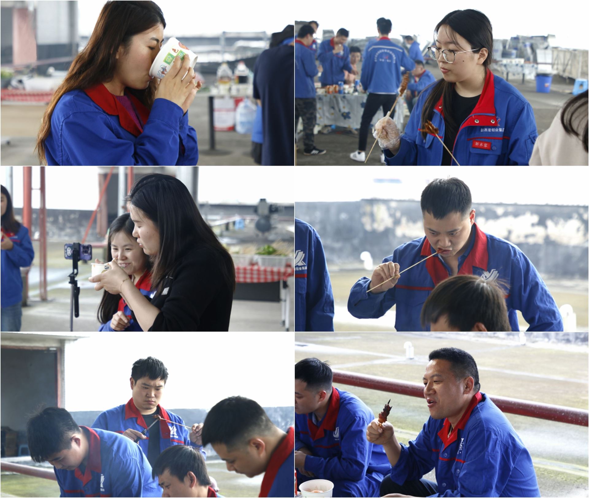 在活動現(xiàn)場,歡聲笑語此起彼伏,氣氛熱烈融洽。大家各司其職,為燒烤活動做著精心準備。從食材的挑選到燒烤架的搭建,從調料的準備到燒烤醬的熬制,每個細節(jié)都凝聚了大家的智慧和汗水。此外,“搶凳子贏取食材”互動游戲環(huán)節(jié),為活動增色添彩。