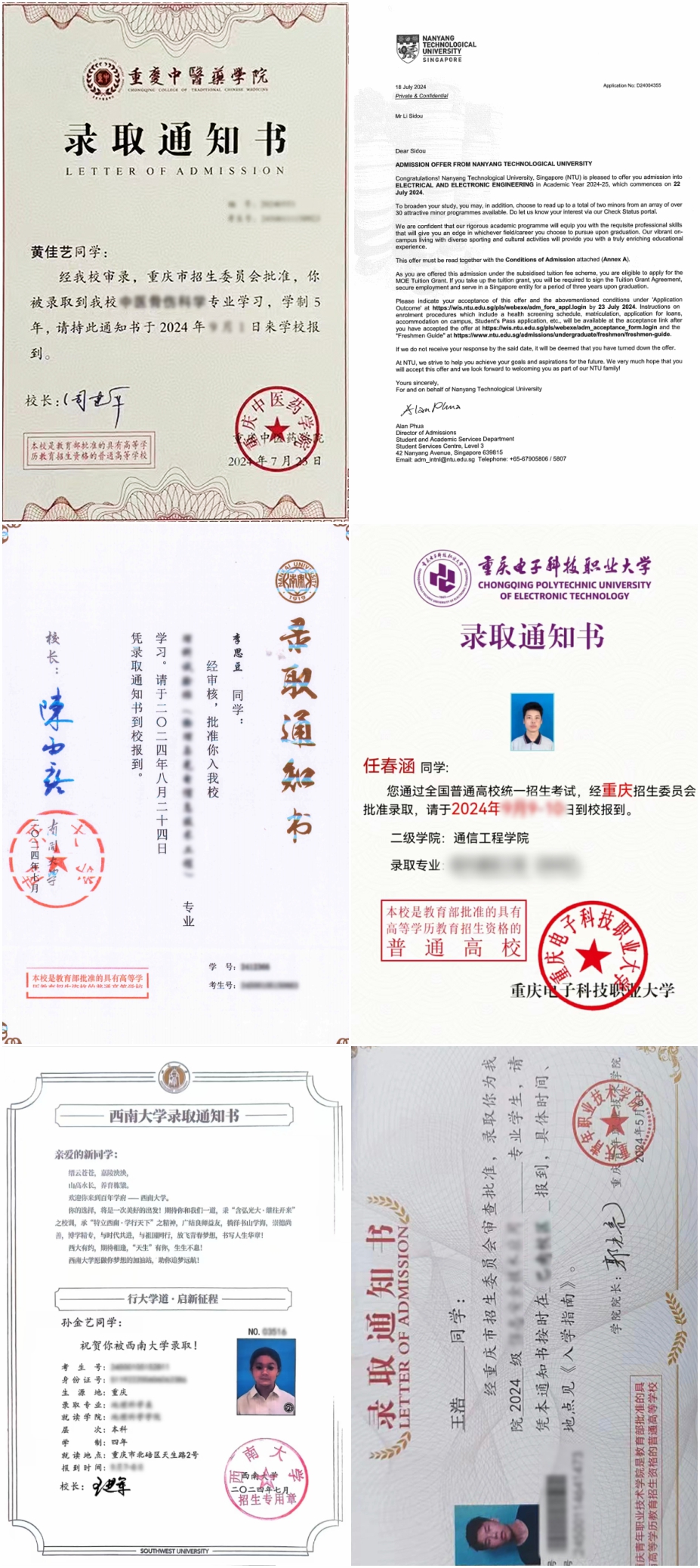 寒窗苦讀數(shù)十載,蒼穹不負(fù)少年意。恭喜李思豆同學(xué)憑借優(yōu)異成績(jī),同時(shí)被南開大學(xué)(雙一流)及新加坡南洋理工大學(xué)兩所知名院校錄??;恭喜孫金藝同學(xué)憑借優(yōu)異成績(jī)考取了西南大學(xué)(211);另有黃佳藝、任春涵、王 浩等同學(xué)分別被重慶中醫(yī)藥學(xué)院、重慶電子科技職業(yè)大學(xué)、重慶青年職業(yè)技術(shù)學(xué)院等重點(diǎn)本科院校及高職院校錄取。