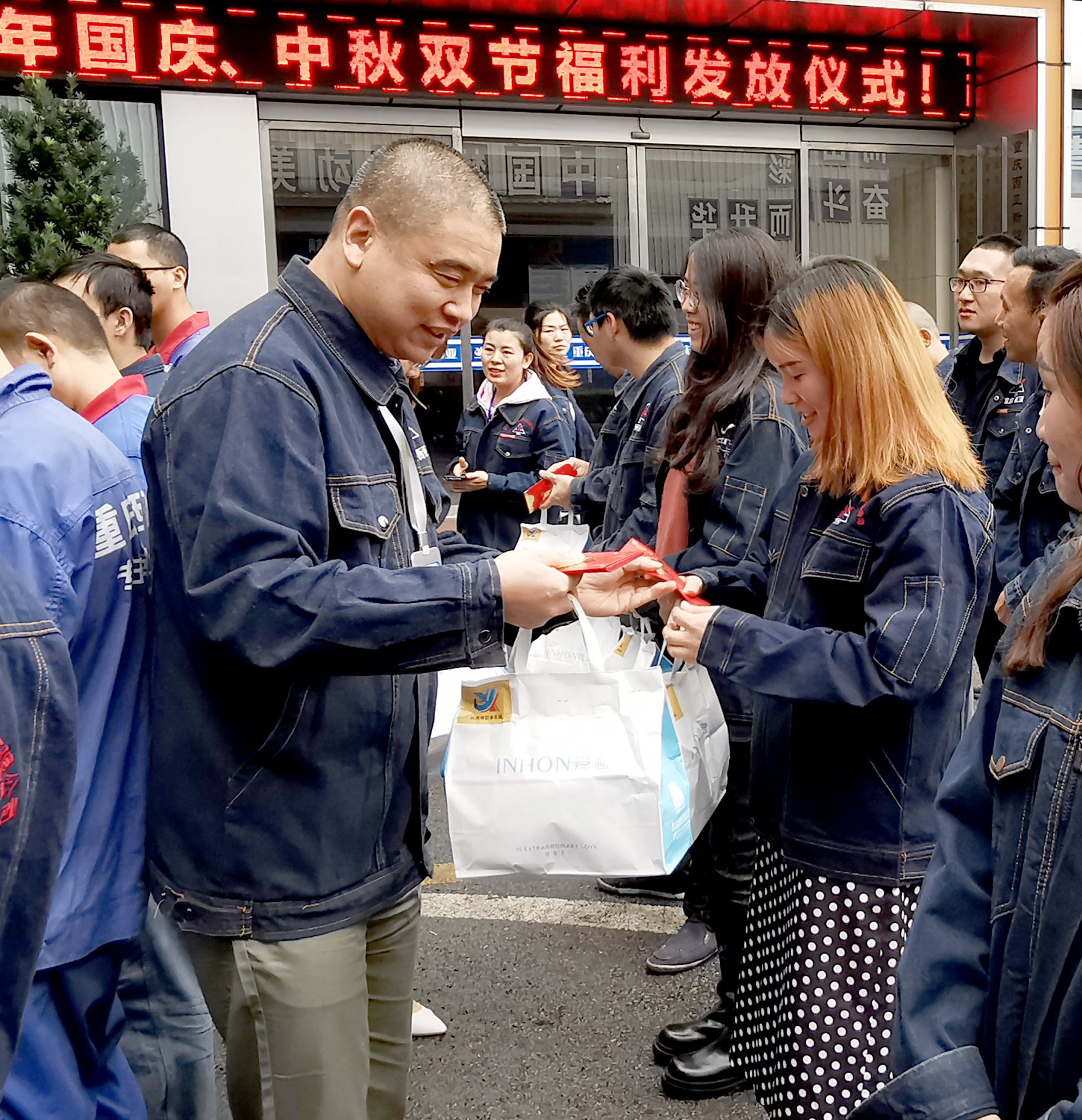活動(dòng)現(xiàn)場(chǎng),經(jīng)營(yíng)班子成員將國(guó)慶中秋雙節(jié)福利禮品和員工家屬慰問(wèn)金發(fā)放到每一位員工手中。