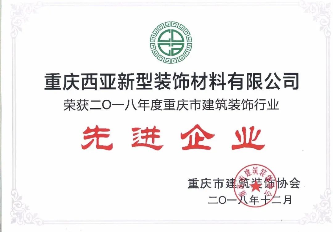 2018年榮獲二0一七年度重慶市建筑裝飾行業(yè)“先進企業(yè)”;