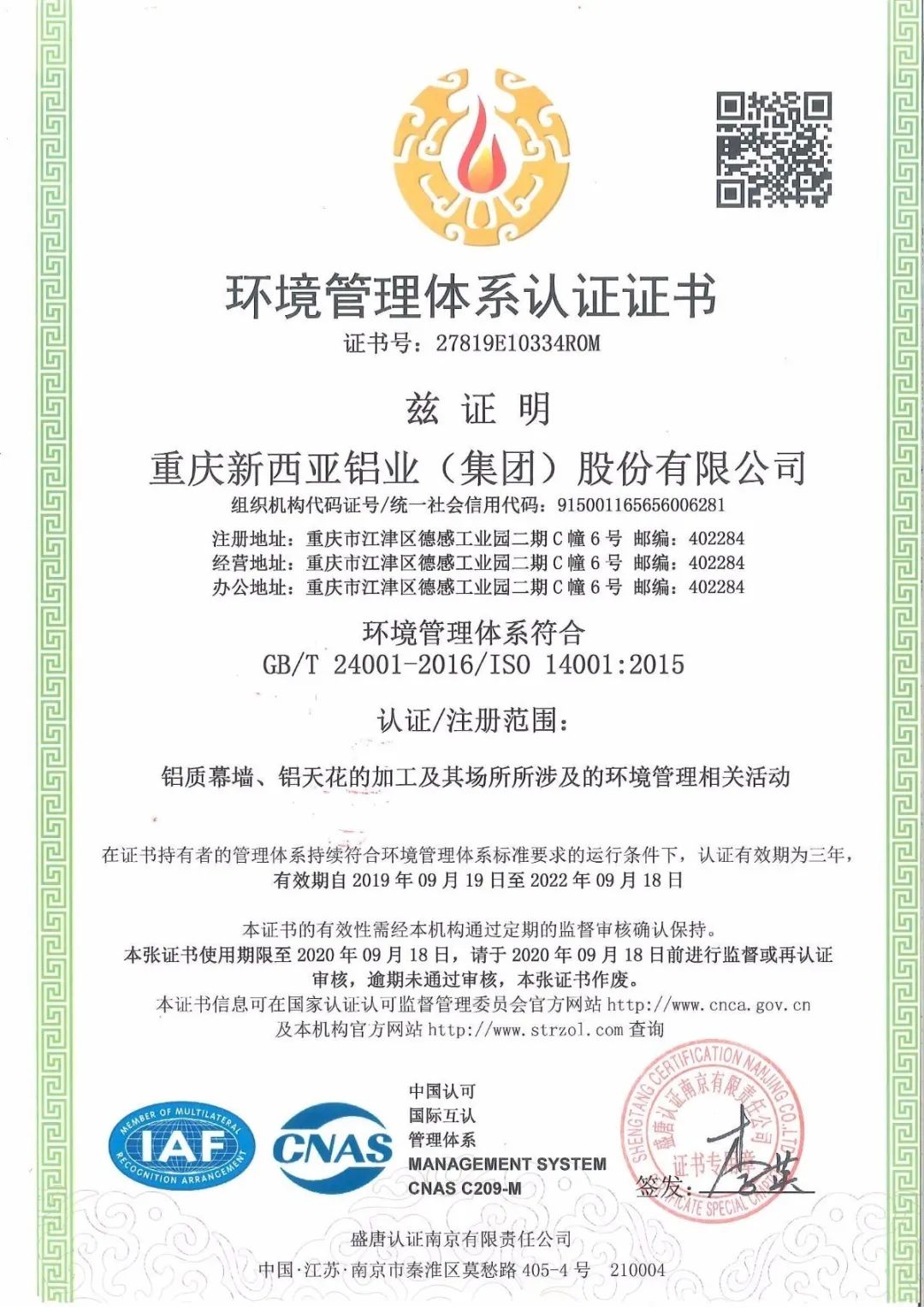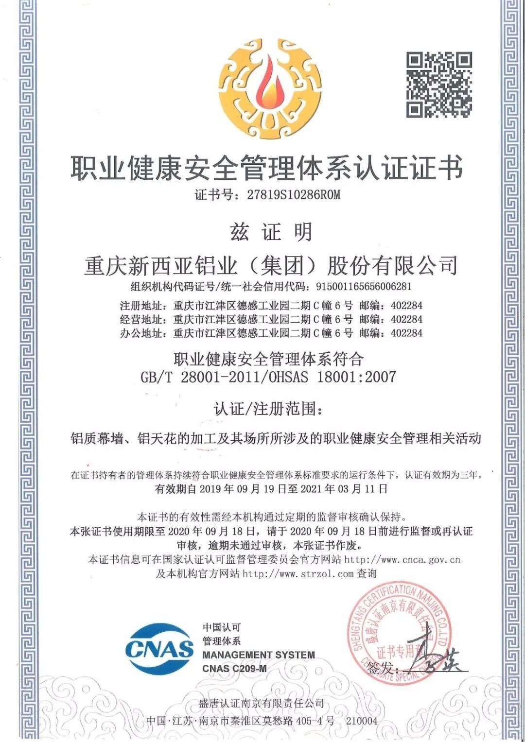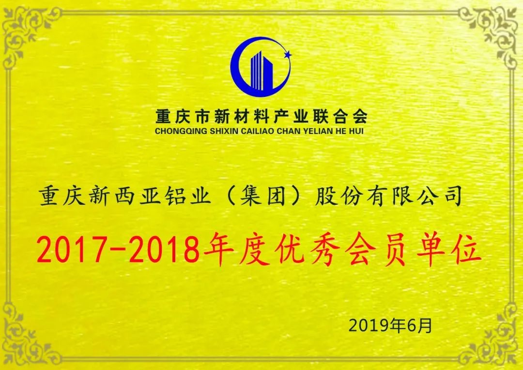 2019年10月,榮獲“2019年重慶十佳社會責任貢獻獎”“2019年鋁行業(yè)十佳廠商”稱號;