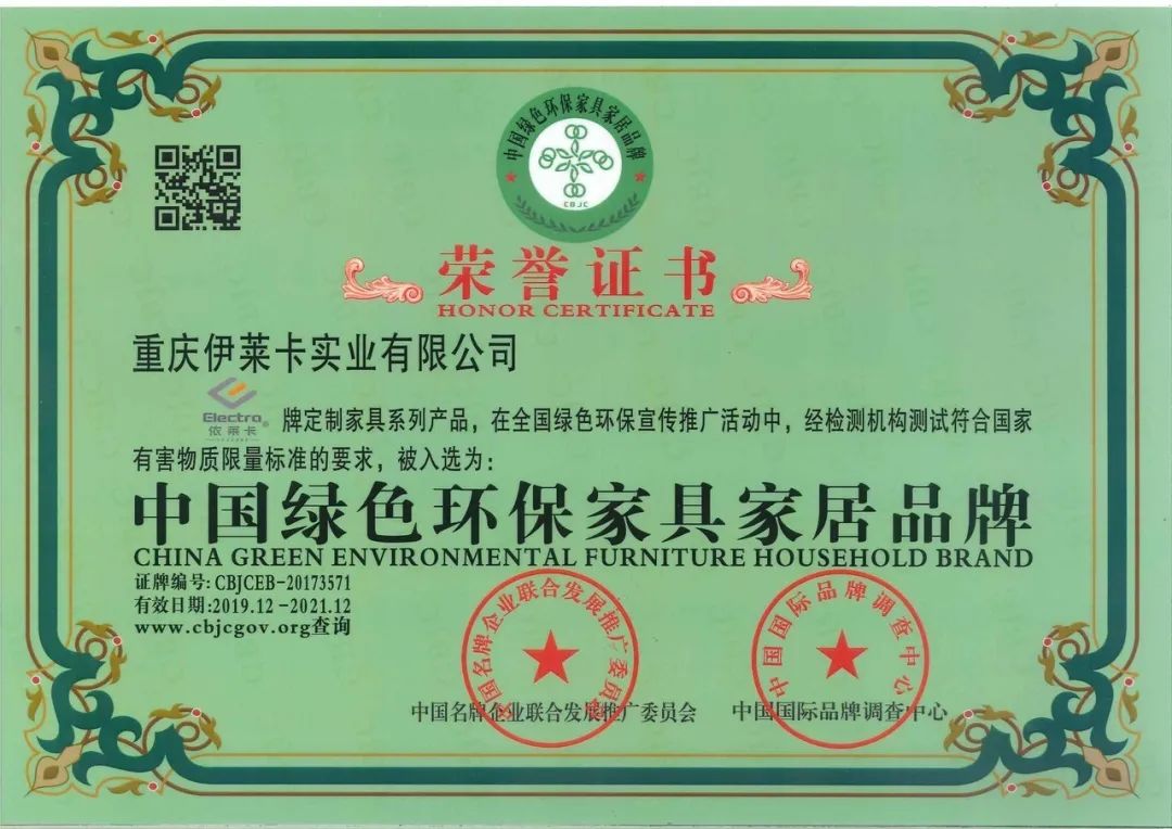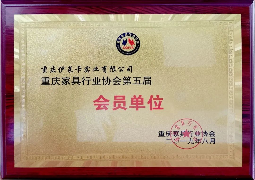 2019年重慶伊萊卡實業(yè)有限公司被重慶家具行業(yè)協會評為“優(yōu)秀企業(yè)”;