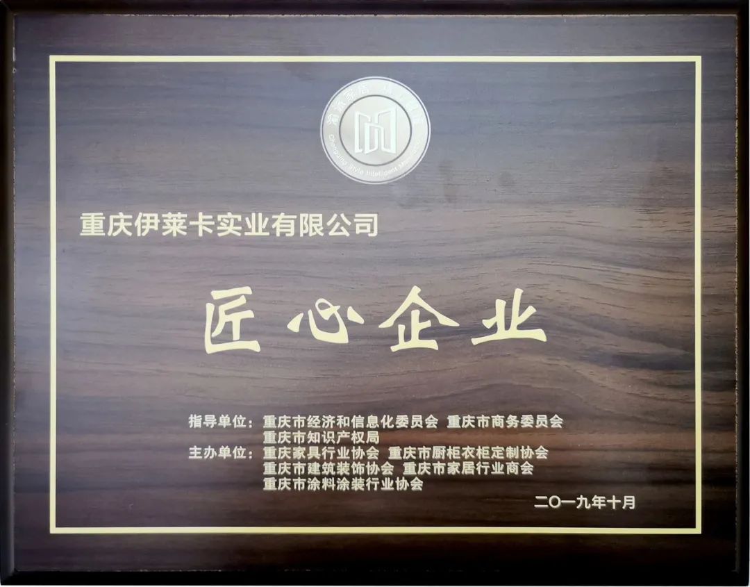 2019年重慶伊萊卡實業(yè)有限公司被重慶家具行業(yè)協會評為“匠心企業(yè)”;