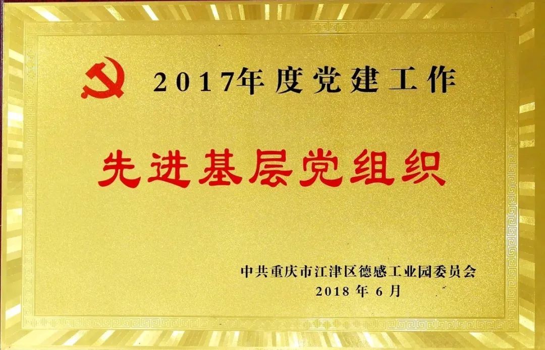 2018年6月被中共重慶市江津區(qū)德感工業(yè)園委員會評為“2017年黨建工作先進基層黨組織”;