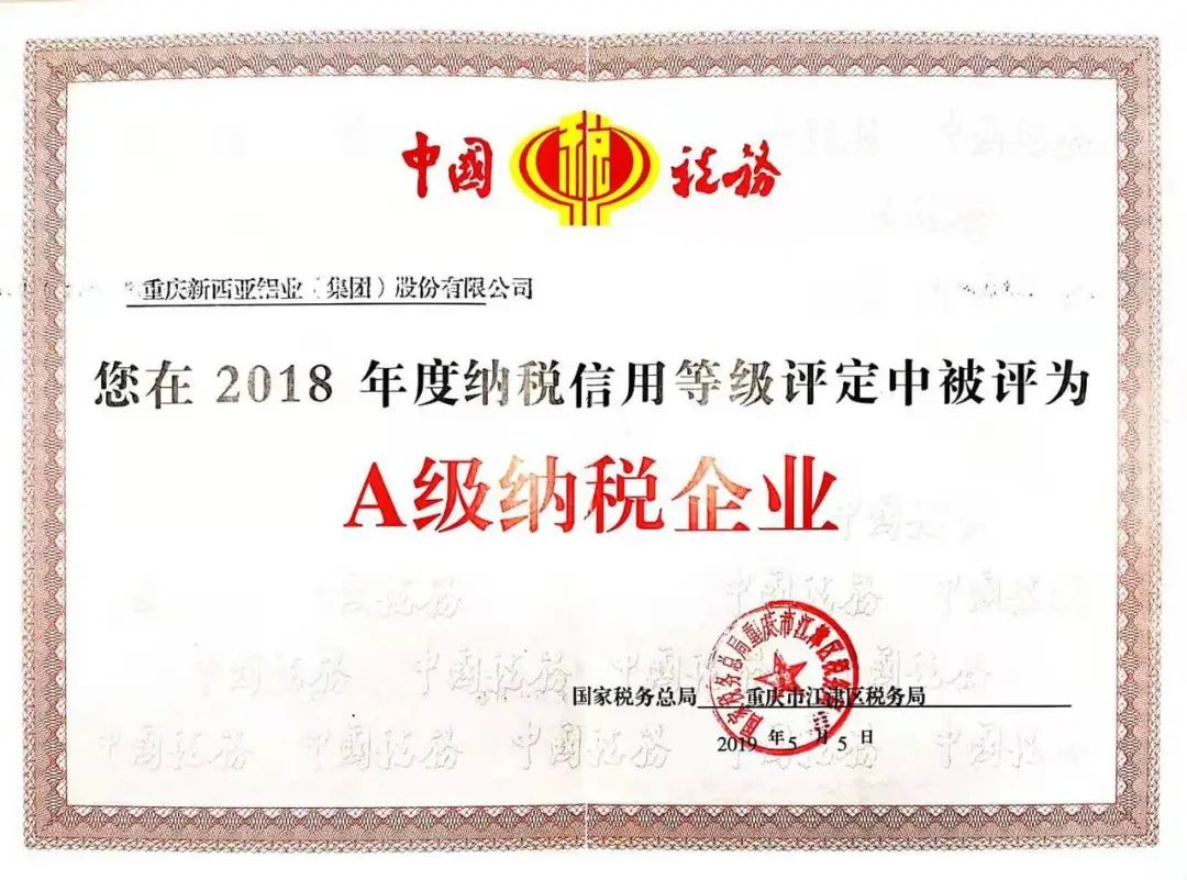 2020年4月,重慶市總工會授予新西亞鋁業(yè)集團“重慶五一勞動獎狀”;