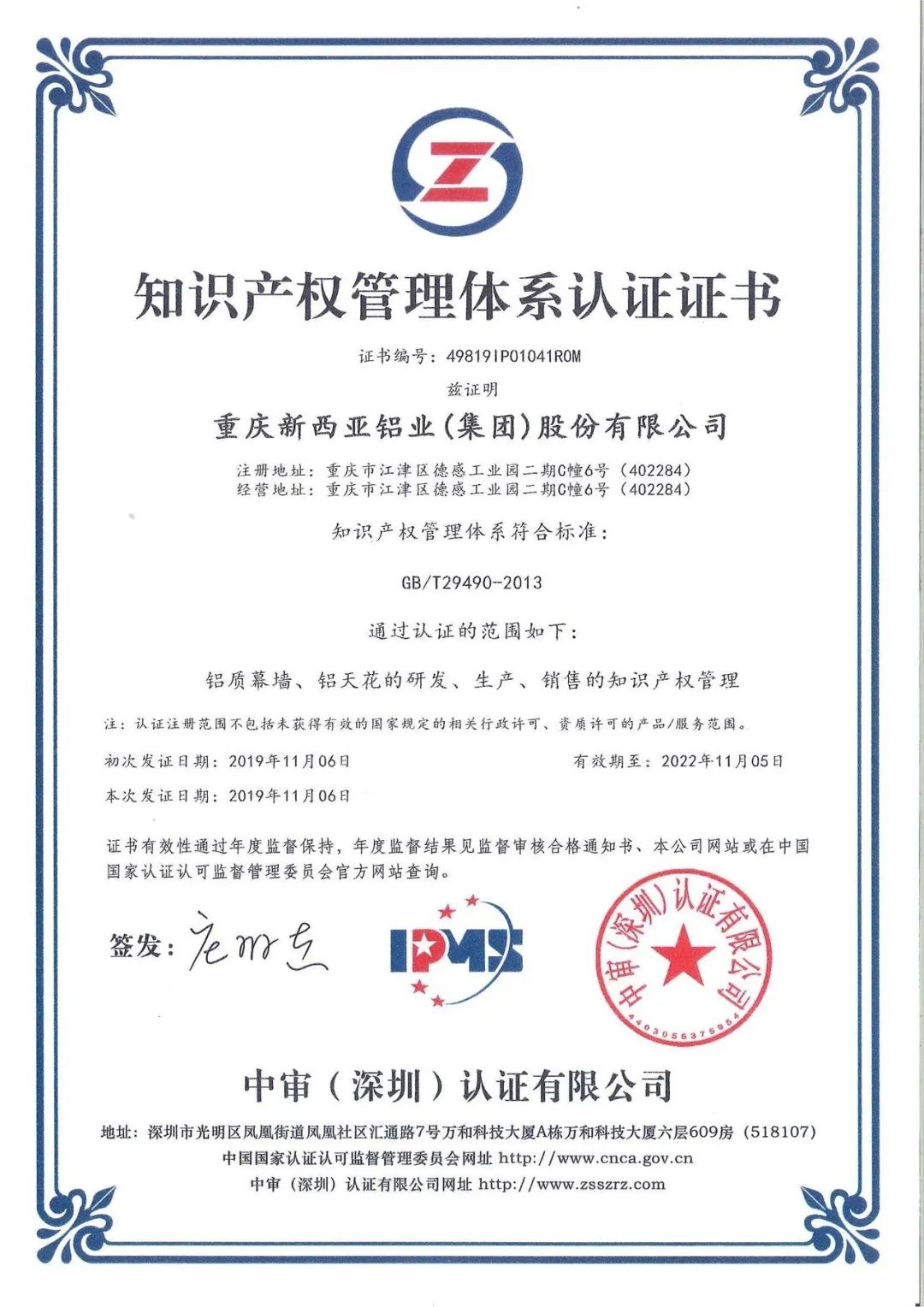 2019年榮獲知識產權管理體系認證