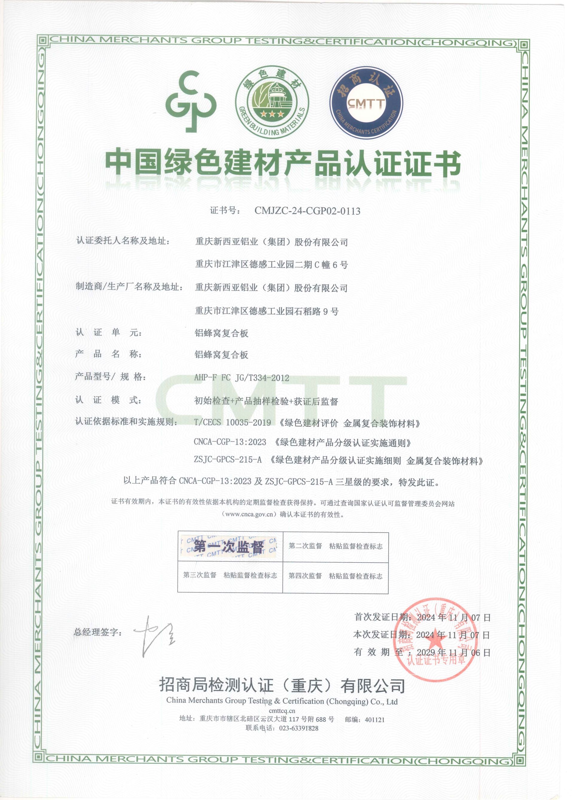 中國綠色建材產(chǎn)品認(rèn)證(鋁蜂窩復(fù)合板)
