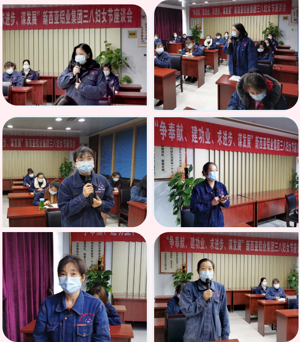 在和諧、融洽、喜慶的氣氛中,與會女職工代表們暢所欲言。她們結(jié)合本職工作談體會,聯(lián)系個人生活聊感悟,圍繞公司經(jīng)營發(fā)展提建議,謀對策。她們紛紛表示在今后的工作中,會不斷用新知識、新方法充實自己、提高自己,充分發(fā)揮女員工耐心細致、提能力、創(chuàng)佳績,為新西亞鋁業(yè)集團各項工作再上新臺階作出貢獻。