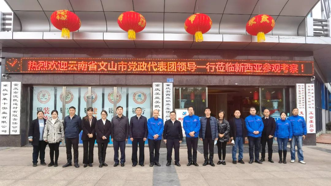 1月13日上午,云南省文山市黨政代表團蒞臨新西亞鋁業(yè)考察交流、招商座談。文山州委常委、市委書記蔣俊率領云南省文山市黨政代表團赴新西亞鋁業(yè)集團招商考察,集團公司總經(jīng)理劉斌和經(jīng)營班子成員全程陪同參觀了鋁裝飾展廳、依萊卡全鋁家居體驗館以及公司文化長廊。