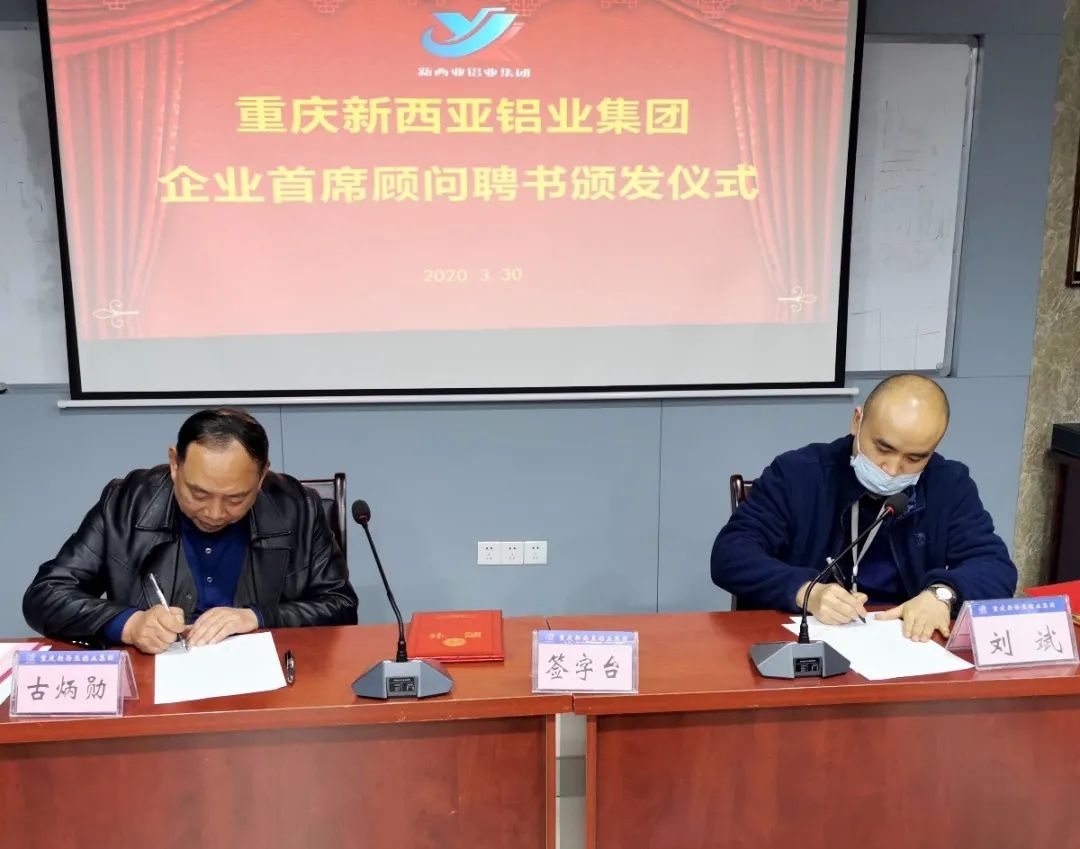 3月30日,重慶新西亞鋁業(yè)(集團(tuán))股份有限公司企業(yè)首席顧問(wèn)聘任儀式在公司舉行??偨?jīng)理劉斌參加會(huì)議,向新聘企業(yè)首席顧問(wèn)古炳勛先生頒發(fā)了聘書,并作了重要講話。