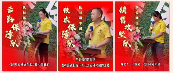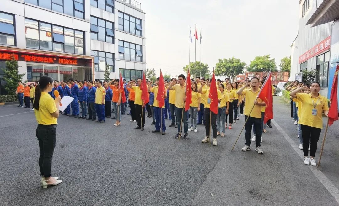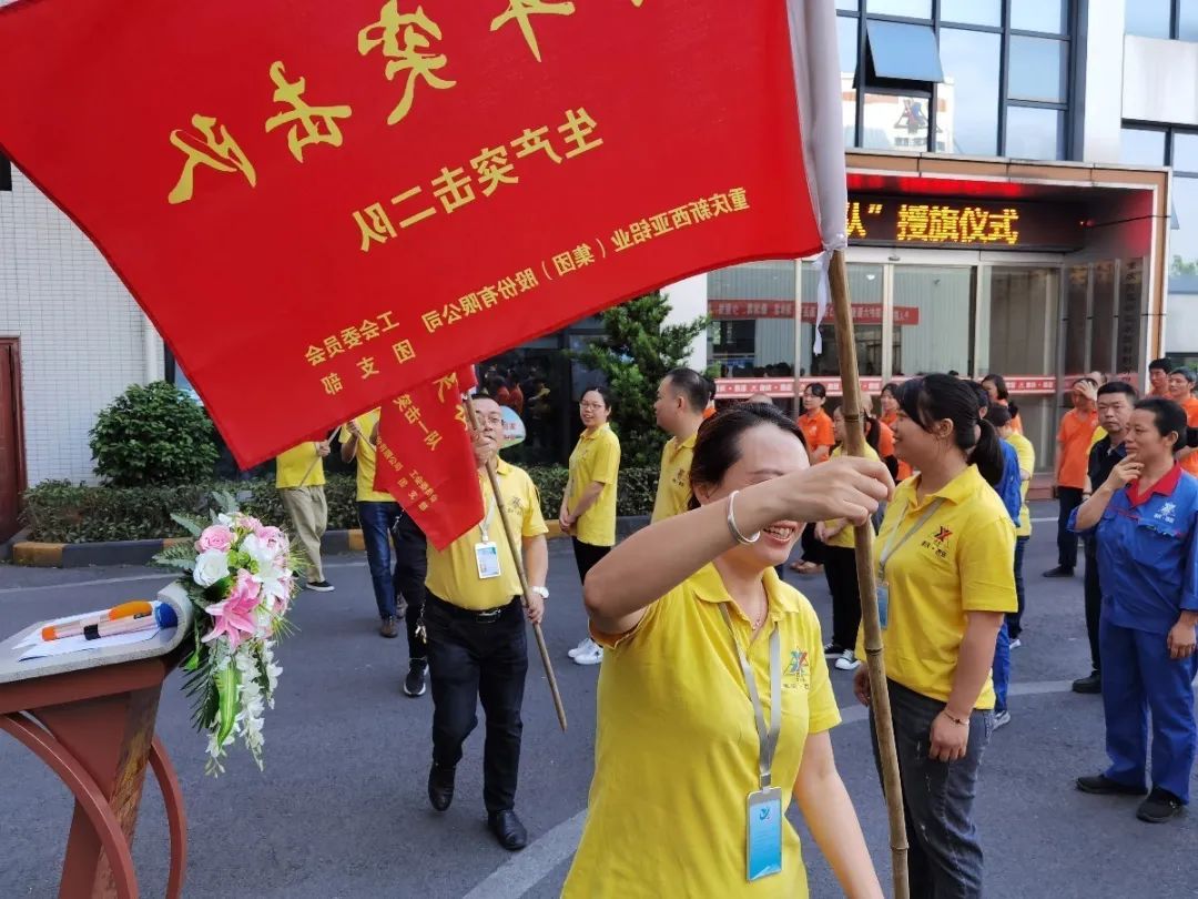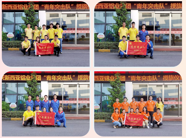 隨后,公司經(jīng)營班子成員分別向“后勤保障隊”、“技術保障隊”“銷售攻堅隊”、“生產(chǎn)突擊一隊”、“生產(chǎn)突擊二隊”、“生產(chǎn)突擊三隊”、“鋁家居突擊隊”七支青年突擊隊隊伍授旗。