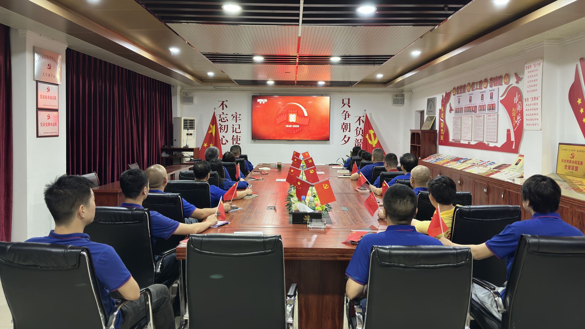 為紀(jì)念抗戰(zhàn)偉大勝利、弘揚(yáng)抗戰(zhàn)偉大精神,進(jìn)一步激發(fā)全體員工的愛國(guó)熱情與民族自豪感,集團(tuán)公司黨支部組織全體黨員干部、入黨積極分子及干部群眾代表集中收看紀(jì)念大會(huì)及閱兵活動(dòng)直播,共同見證這一意義非凡的時(shí)刻。黨支部書記劉斌與大家一同觀看直播,回顧歷史,感受祖國(guó)的輝煌與榮耀。